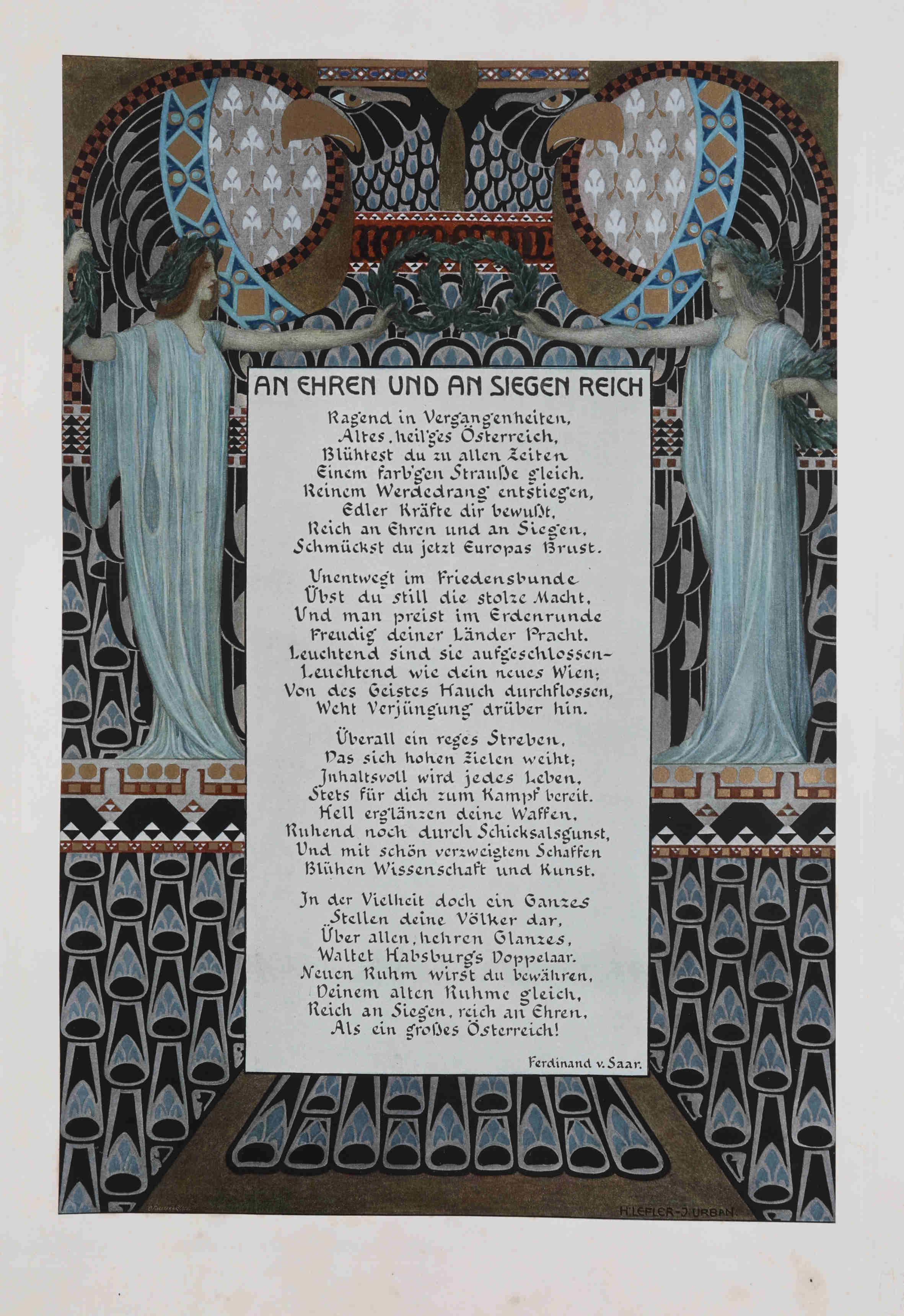 unter dem Allerhöchsten Protektorate Seiner Kaiserlichen und königlich apostolischen Majestät Franz Joseph I., literární část sestavil J.A. von Helfert, obrazovou část J. Dernjac, úprava H. Lefler, J. Urban, J.J. Tautenhayn, L. Hujer a R. von Larisch, vydal Max Herzig, 1900?, bohatě secesně zdobený titulní list a patitul a 50 heligravur, 392 s., celoplátěná zdobená vazba se zlacením a imperiálním reliéfem na desce, místy odřené, lehce navlhlé desky, skvrny na papíře