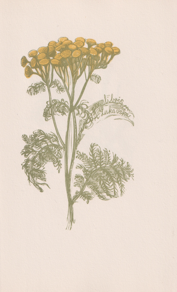 úvod a podpis v tiráži Vl. Thiele, 11 bar. dřevorytů exlibris v přílohách, dřevoryt v titulu a v tiráži, dřevoryt na obálce, úvodní iniciála a podpis v tiráži Jar. Lukavský, vysadil, vytiskl a vydal pro své přátele Vl. Bujárek, Praha 1951, pův. brož, ex. 72/111, nestr. (14 + příl.), obálka při kraji lehce zašlá, velmi dobrý stav