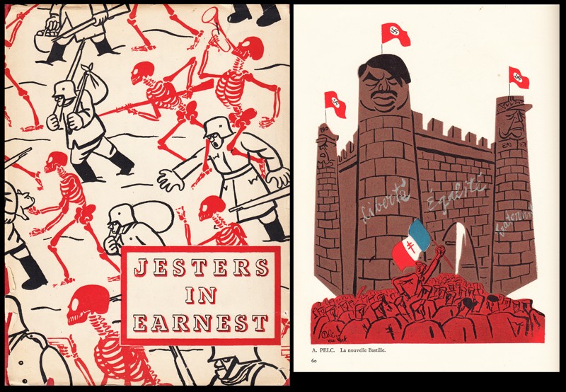 protifašistické karikatury a kresby pěti čs. výtvarníků, 20 kreseb a koláží A. Hoffmeister, A. Pelc, monogr. Z.K., W. Trier a "Stephen", předmluva David Low, ob. A Hoffmeister, vydal John Murray, London 1944, 64s., ob. potrhaná, na hřbetu kus chybí, velmi dobrý stav