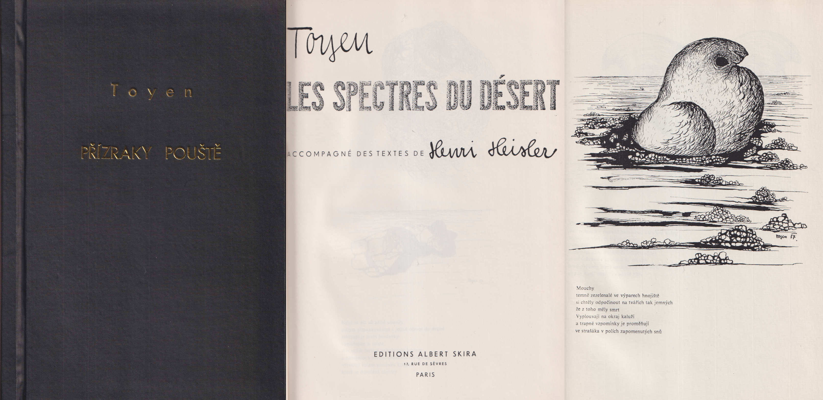 na patitulu přípis "Ludvíku Kunderovi Heisler" Básně z cyklu 12 kreseb Toyen z let 1936-1937. Věnováno Teigovi. Překlad do francouzštiny J. Hořejší. Praha, Edice surrealismu 1939. Vyšlo pod krycí hlavičkou pařížského nakl. A. Skira.