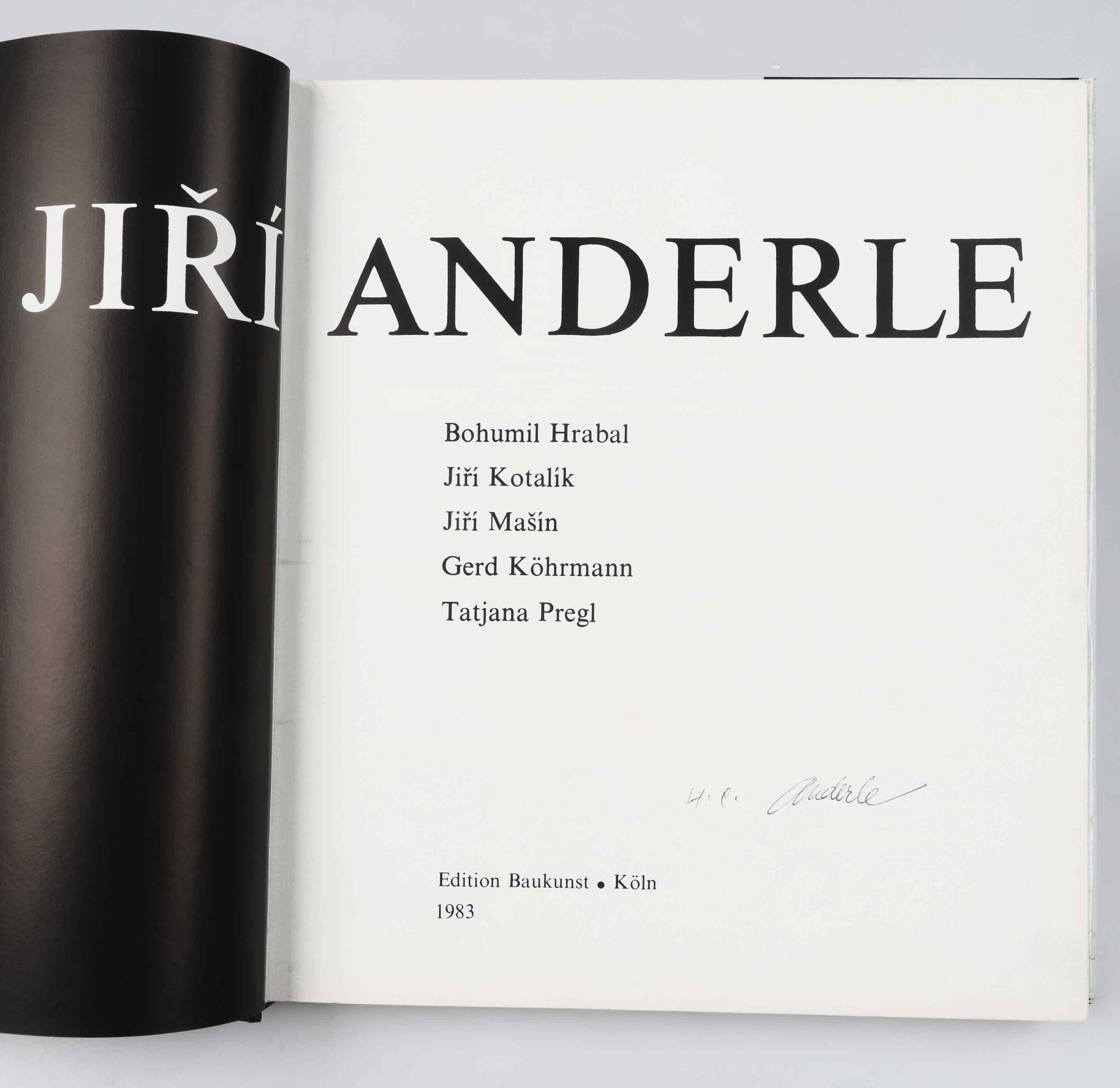 podpis na titulním listu Jiří Anderle, první výpravná monografie J. Anderle v němčině, autoři textů B. Hrabal, J. Kotalík, J. Mašín, G. Köhrmann, T. Pregl, vydal Edition Baukunst, Köln 1983, clpl. vazba s obálkou, 262 s., okraje vazby místy odřené, velmi dobrý stav