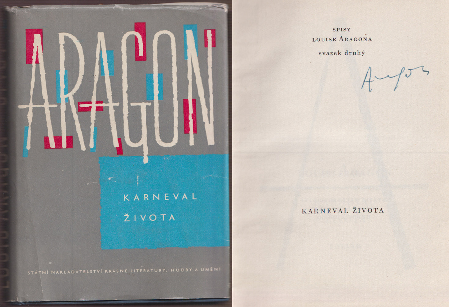 podpis autora na patitulu, ob. a vazba M. Hegar, spisy L. Aragona, sv. 2, vyd. SNKLU, Praha, 1961, clpl. vazba s obálkou, 446s., velmi dobrý stav knihy, obálka při okrajích poškozená