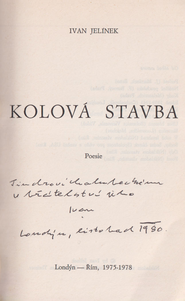 podpis básníka a věnování J. Chalupeckému na titulu, ob. Ivan Theimer, poesie v exilu Londýn - Řím 1975-1978, nákladem vlastním, Řím 1980, 99s., pův. brož, obálka vzadu místy pokrčená, velmi dobrý stav