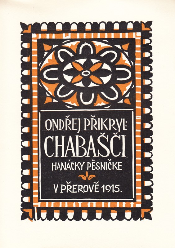 obálka, titulní list a frontispis provedení dřevorytem, typografická vnitřní výzdoba Jar. Votruba, dvoubarev. tisk, vydala Tiskařská a vydavatelská společnost - Přerovský obzor, Přerov 1915, 100s., orig. brož, velmi dobrý stav