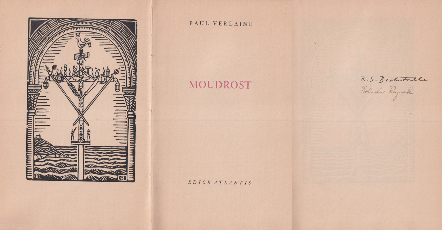 překlad a podpis před titulem B. Reynek, frontispis a 4 viněty dřevorytem a podpis před titulem R. S. Bechetoille, tisk Kryl a Scotti, 3. sv. Edice Atlantis, vydal Jan V. Pojer, Brno 1929, dobová polokožená vazba, přednostní výtisk XV/L (150 výtisků), na rotterdamském japanu, 278 s., , dobrý stav