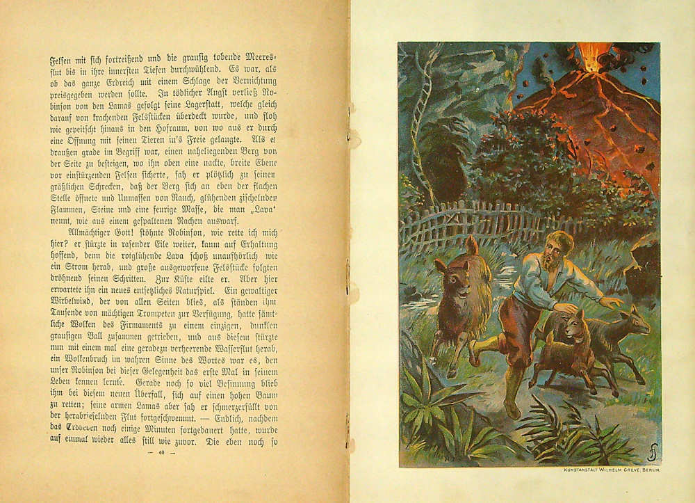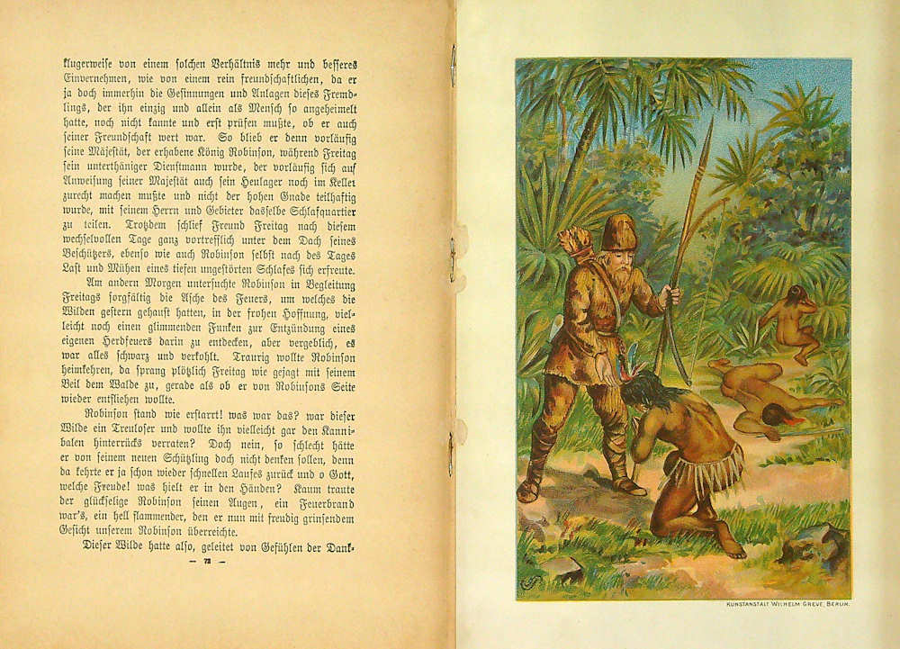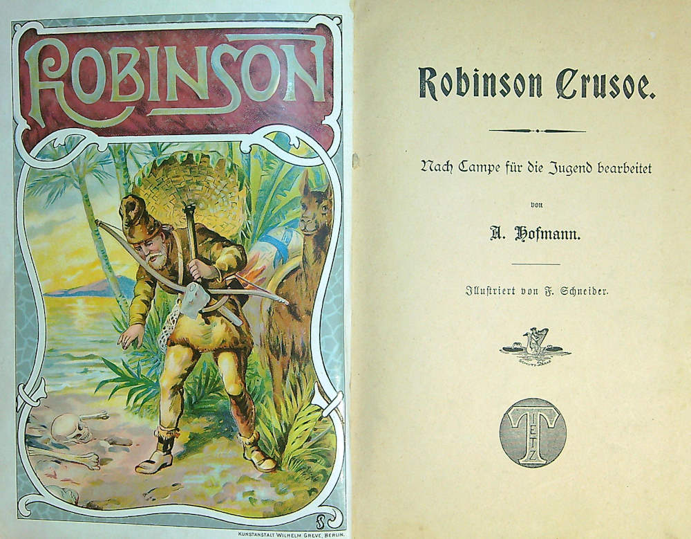 pro mládež upravil A. Hoffmann, barvotiskové ilustrace F. Schneider ve frontispisu, dvě v přílohách, viněta v titulu a v závěru, německy, frakturou, vydal Tietz? Verlag, Berlin cca 1890, 116 s., plpl. vazba s reliéfní kresbou a v rámeček vlepenou barvotiskovou ilustrací, desky naprasklé a při okrajích odřené, poškozené, rozvolněná vazba, zažloutlé listy, některé listy uvolněné, vlastnická razítka na předsádce, dobrý stav