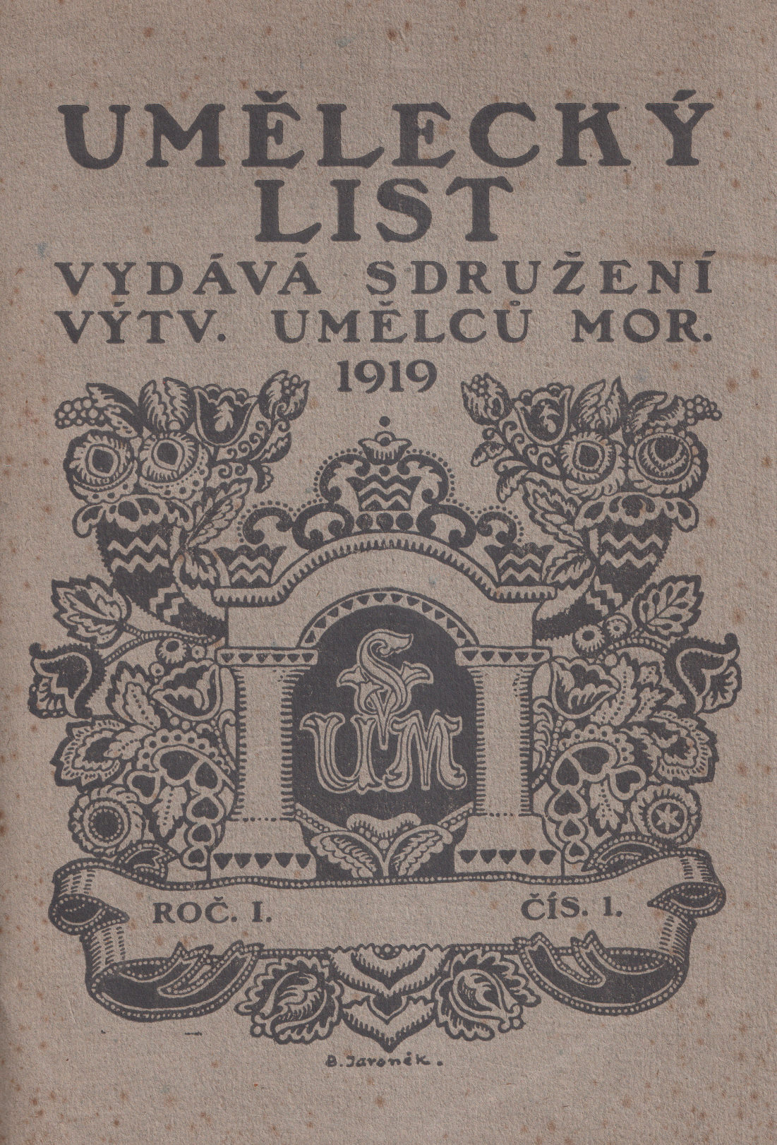 portrét T.G.Masaryka úvodem litografie Jakub Obrovský, návrh obálky Bohumír Jaroněk, svázaný ročník, ob. vevázána vzadu, redaktor Alois Kalvoda, množství obrazových příloh, tisk Štenc, vydalo Sdružení výtvarných umělců moravských, Hodonín 1919, celopl. vazba, 152s., velmi dobrý stav