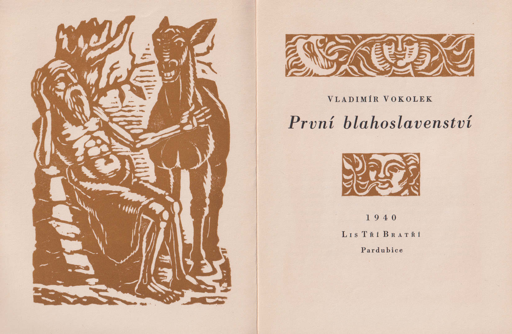 obálka, frontispis, titul. viněta, linkové dekorace v textu, závěr. viněta vše dřevorytem Vojmír Vokolek, 2. sv. edice Lis tří bratří, tiskl a vydal Vlastimil Vokolek, Pardubice 1940, pův. brož, 46s., ex. 350, velmi dobrý stav, obálka při krajích lehce zašlá