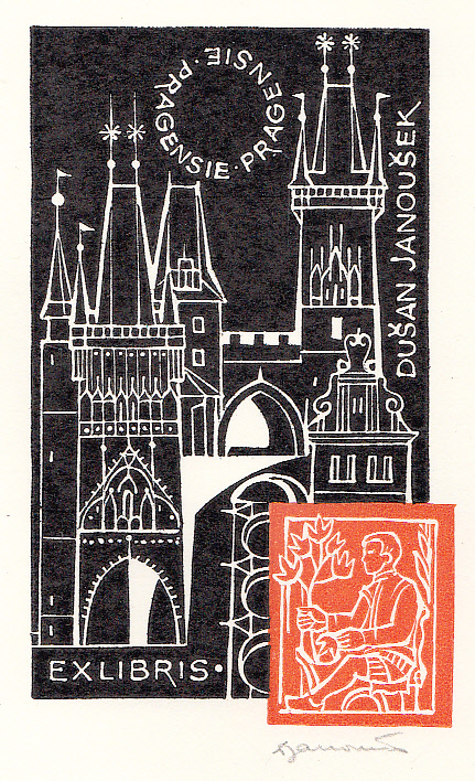 Ex libris Dušan Janoušek / sign. PD D JanoušekRozměry (v cm): 10,7 x 6,5